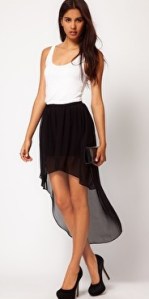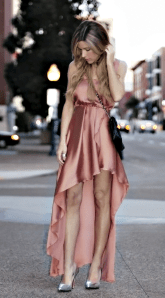Andando nas ruas movimentadas de Londres é fácil saber o que está na moda, apesar das peças bizarras que também circulam por aqui. Tem um tempo que estou vendo muitas mulheres usando vestidos tipo Mullets, aqueles que a parte de trás é mais comprida que a parte da frente, aqui também conhecido como High Low Dress, ao pé da letra podemos traduzir como Vestido Alto Baixo. Um arraso! Quando imaginamos esse vestido logo vem a cabeça um vestido de festa super chique, mas aqui também é muito usado casualmente, com uma jaquetinha jeans por exemplo. Transparente, plissado, acinturado, tomara-que-caia, todos são lindos, basta escolher qual modelo favorece o seu Tipo Físico. Pode usar com meia-calça preta, mas que seja bem fininha como na foto abaixo. Bota nem pensar! Um salto alto, uma jaqueta curtinha de couro está pronta pra arrasar no inverno! As mulheres com corpo no formato de pêra têm que estar atentas pois este vestido adiciona volume nos quadris, principalmente os com elástico na cintura e plissado.