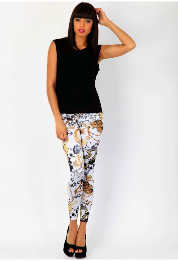 Leggings estampadas. Atitude. No mínimo devem ser usadas com blusa e jaquetas de uma cor só. Eu adoro. Acho linda. Super despojado. Meio agressivo pra um jantar por exemplo. Mas pra um barzinho-balada, sair com os amigos, um lugar mais descontraído, acho super fashion. Muitas pessoas talvez encarem a legging estampada como uma peça meio infantil. Basta usá-la de uma maneira madura pra que se torne interessante. Chama muita atenção na parte inferior do corpo. Bumbum e pernas. Portanto quem quer disfarçar algum volume nessa área, melhor evitá-las. Do contrário, use confiante. Está super na moda!