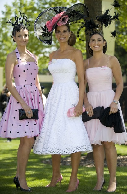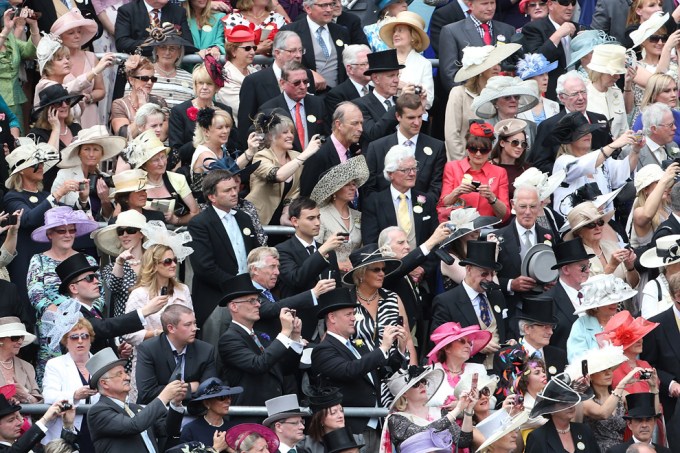 Royal Ascot. 5 dias de Corrida de Cavalos que acontece todo ano no Hipódromo “Ascot Racecourse” na cidade de Ascot (Berkshire), 50km à oeste de Londres. O Evento foi fundado em 1711 pela Rainha Anne. E todo ano a Rainha Elizabeth II e alguns membros da Família Real estão presentes. O Evento tem 3 níveis com valores diferentes. O Silver Ring é o mais acessível. £30 por pessoa. Pode levar comida pra fazer picnic (muitos levam). O Grandstand Admission é mais selecionado e o traje é mais rigoroso. £71 por pessoa. Homens de Terno e mulheres são obrigadas a usar o Fascinator (enfeites no cabelo). O Royal Enclosure só entra quem é sócio e que compareceu nos dois últimos anos. Super selecionado. É onde fica a Família Real entre outras celebridades. O traje é bem rigoroso. Homens de Fraque completo e cartola. Mulheres de vestido até o joelho, com alça de dois dedos de largura (tomara que caia ou alcinha espaguete não são permitidos), obrigatório o uso de chapéu ou pelo menos um enfeite de no mínimo 10cm de diâmetro. Porém, tem um dia nesse evento que é chamado Ladies Day. Resumindo é um Desfile de Chapéu. Um mais estravagante que o outro. Só vendo as fotos pra entender.