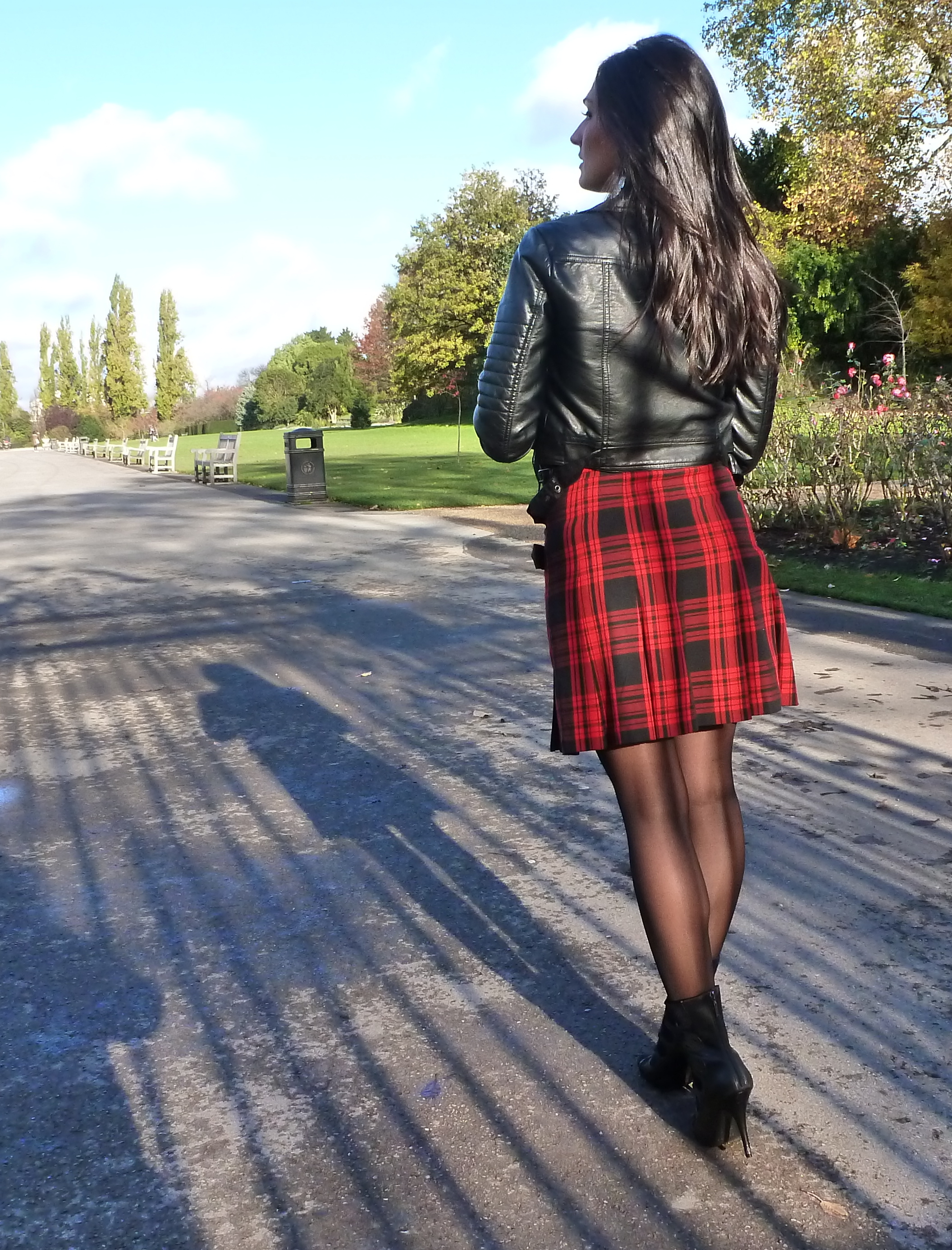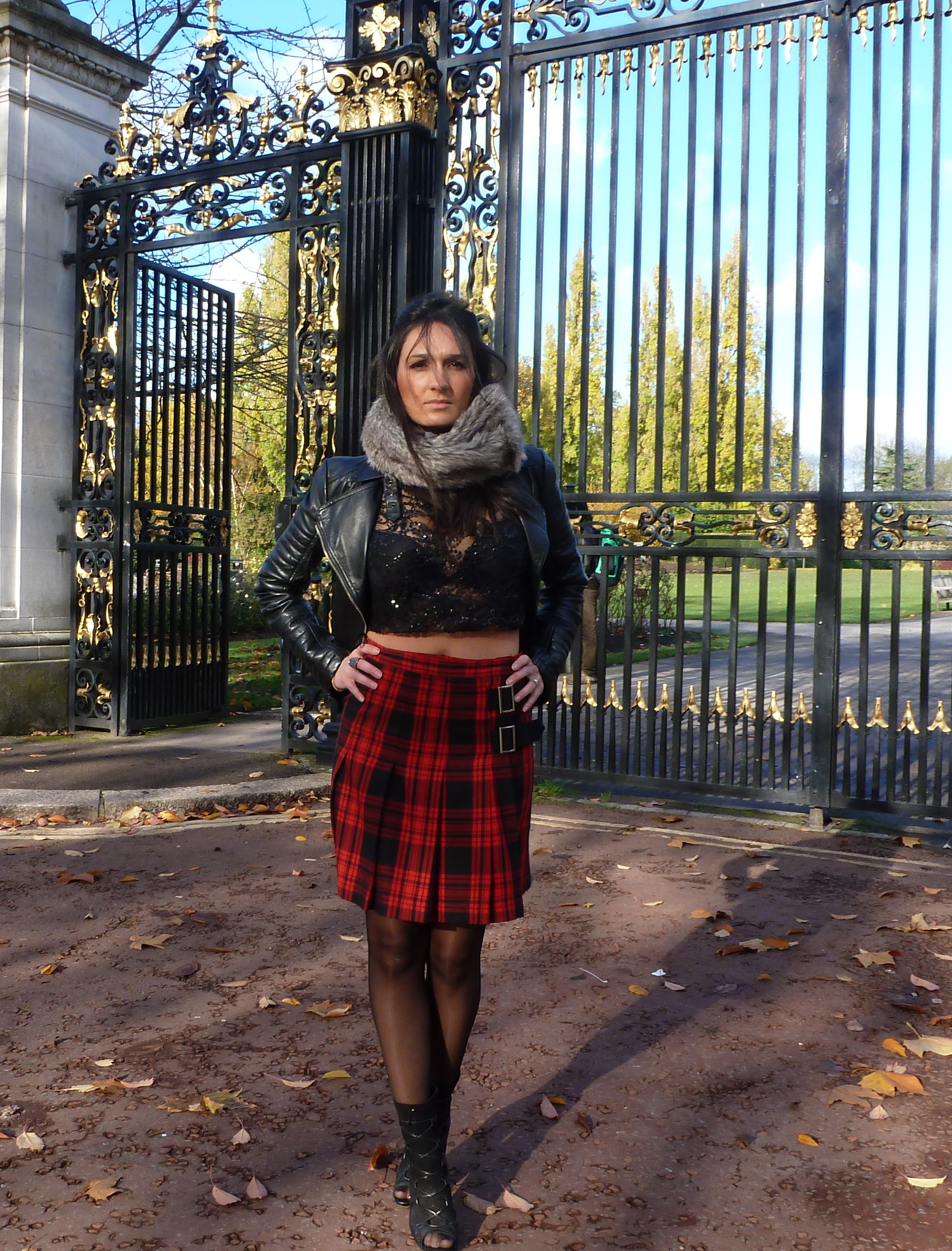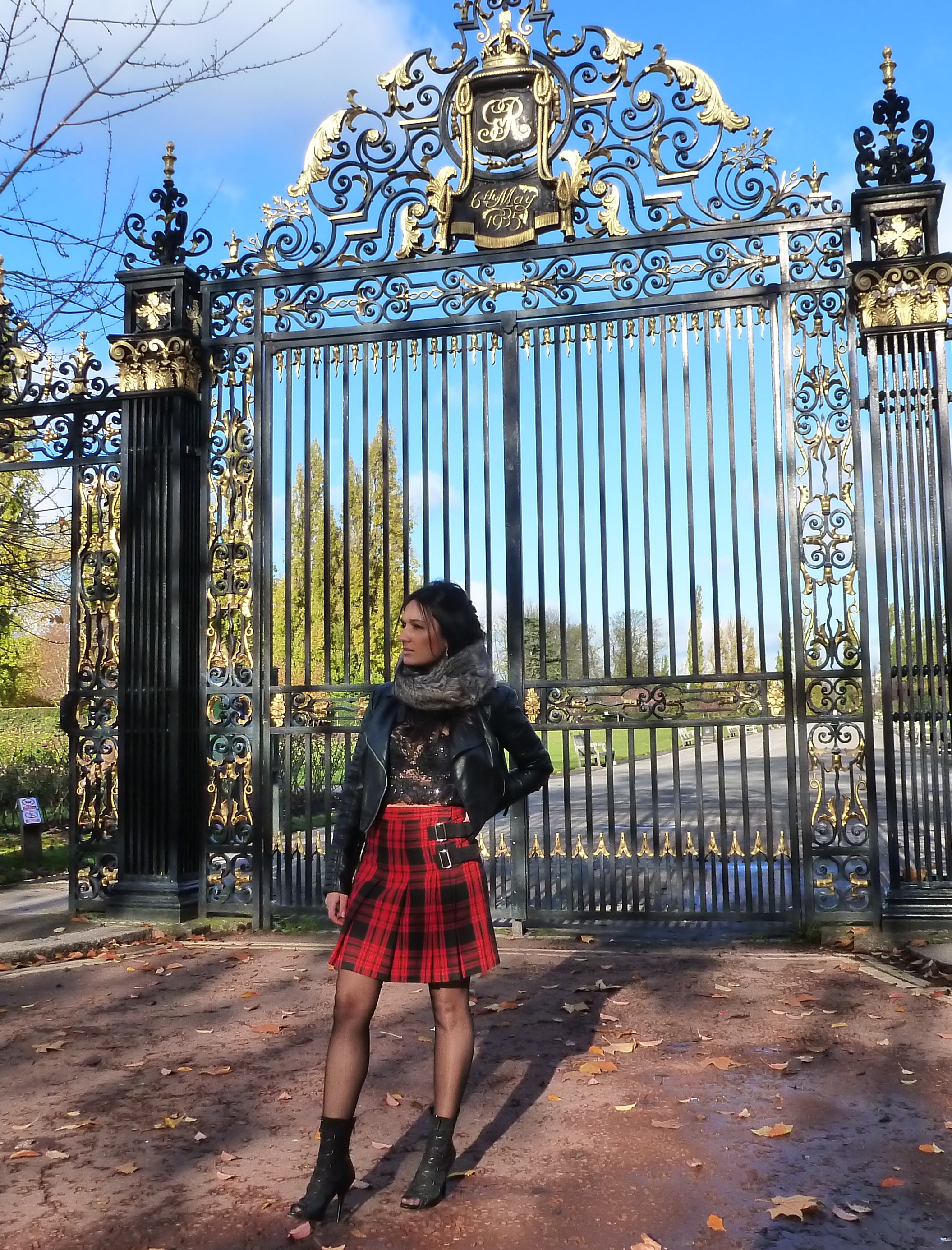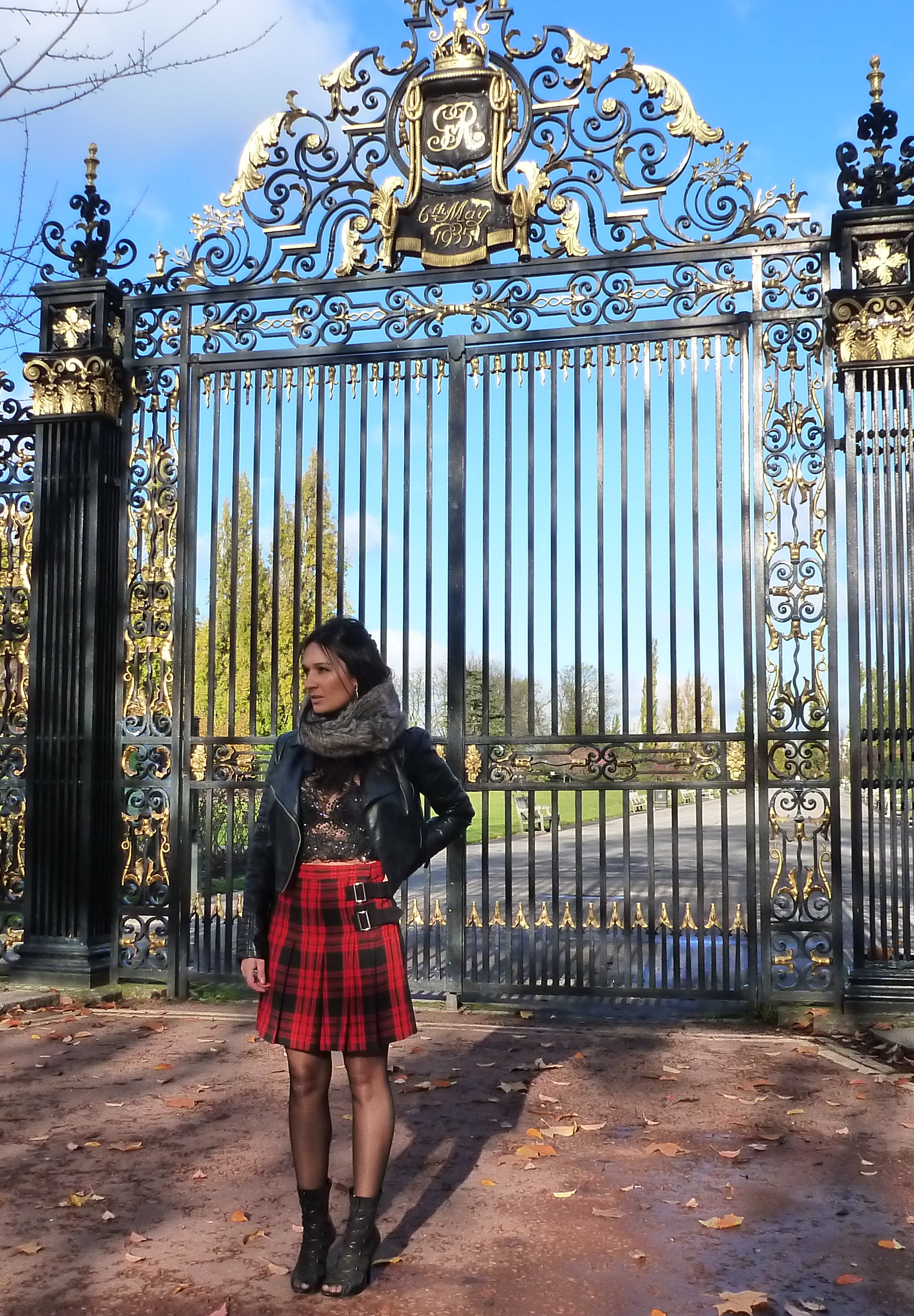 Scottish Red Tartan is in everywhere. All the shops has at least one item in this print. Top, trousers, dress, scarf, everything. I chose a pleated skirt, very Scottish. I love it. A bit Rock n’ Roll style. Match this print with black is a bit obvious and I didn’t do any different, I just chose a embellished lace top to be quite glam. Check it out: