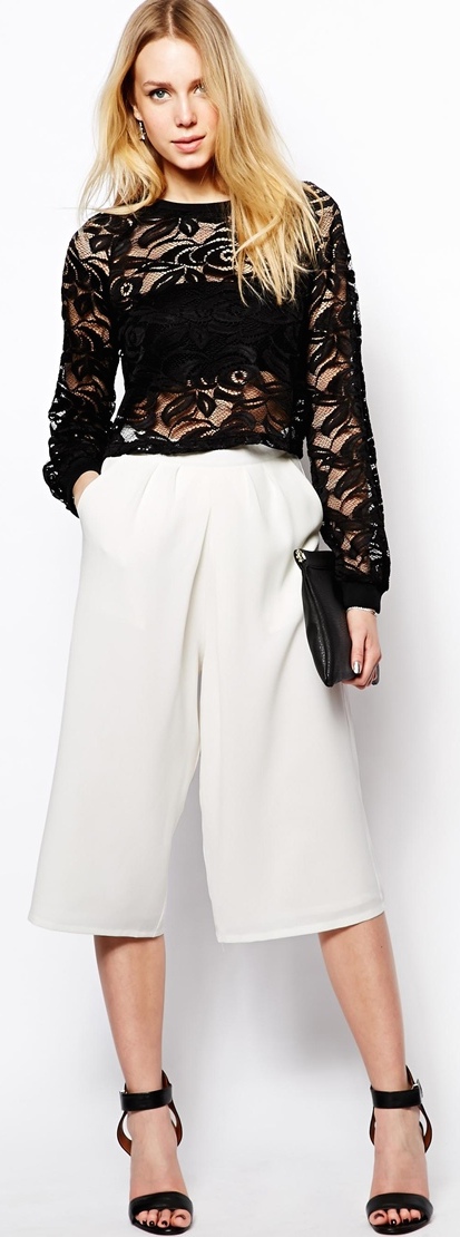 Faz um tempinho que estou vendo o Culotte Midi Shorts em muitas lojas aqui em Londres. Lembra aquele shorts que parece saia? Voltou! No comprimento Midi. Eu não gosto muito, mas sei lá. Talvez eu veja algumas pessoas usando de uma maneira legal, com blusas modernas, com personalidade e talvez eu comece a gostar (ou não mesmo… rs). Se vc quer esconder algumas gordurinhas aqui e ali ou se vc quer parecer mais alta, o Culotte Midi Shorts definitivamente NÃO e recomendado para vc. As pregas aumentam muito o volume e o comprimento até o joelho corta a silhueta fazendo a pessoa parecer mais baixa. Mas se vc não tem nenhuma dessas preocupações, experimente (se vc tiver interesse). Escolhi umas fotos que eu achei legais para vcs entenderem melhor, mas eu continuo nao gostando… rs.